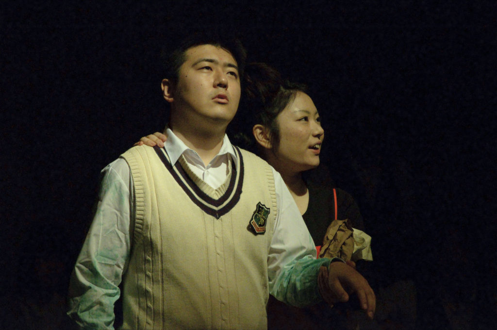 “その時”、夜の校庭。二人は初めて、尚且つ当然決められたこととして出会う。二人は校庭に穴を掘り、深く、深くへもぐっていく。時間を止めるために。時間を止めて、総ての静寂の中で、確認するのだ。お互いの鳴り響く心臓の鼓動を。私たちの生きるただひとつの証を。